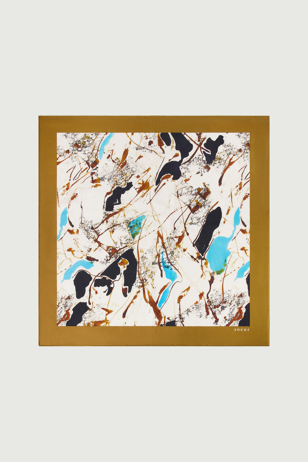 Printed silk twill foulard beige/turquoise