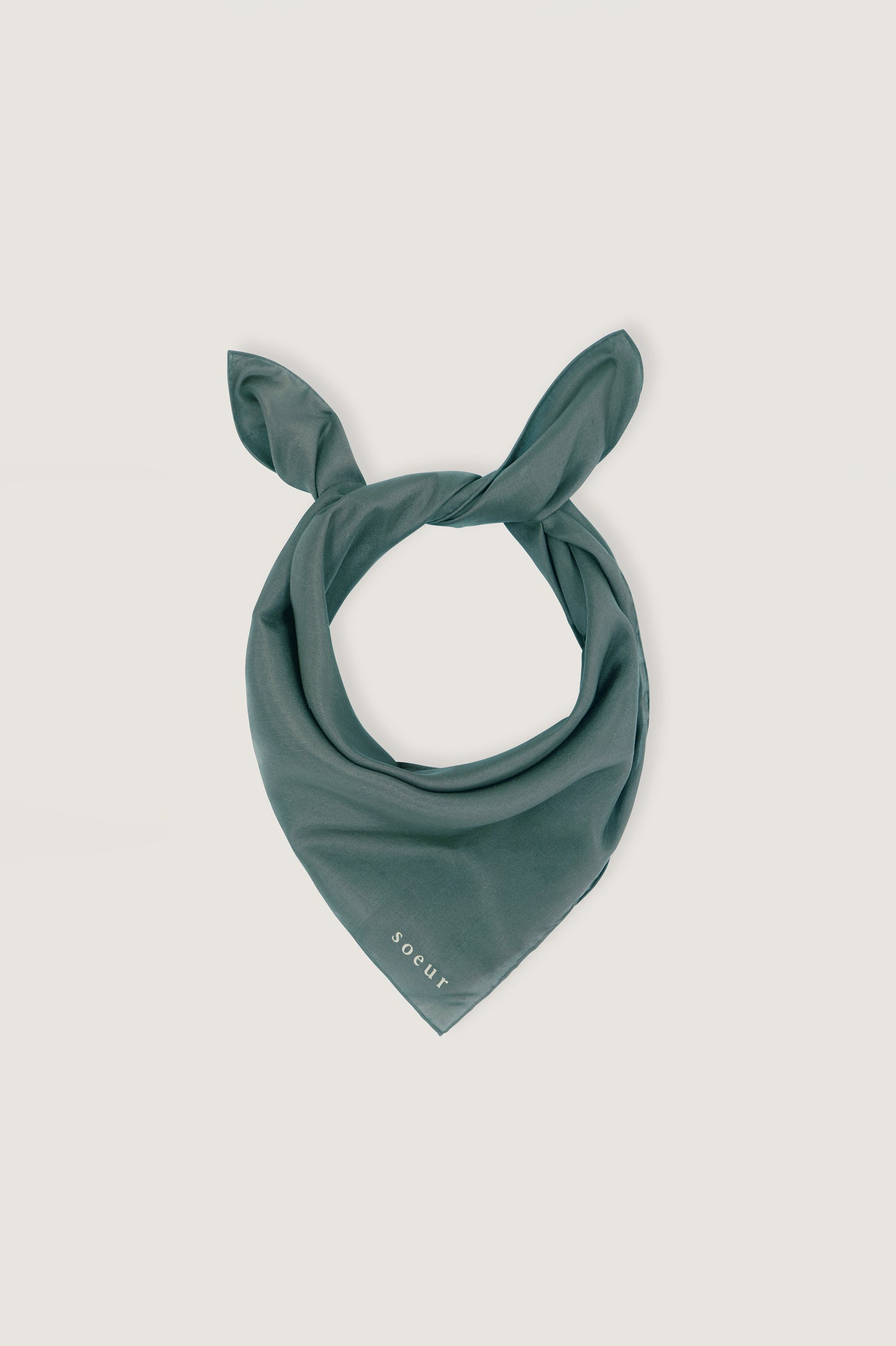 SQUARE is a solid silk scarf. An iconic piece from Soeur's collection, our silk squares add a touch of elegance and whimsy to any outfit. Whether tied around the neck, subtly peeking out from a shirt or sweater collar, knotted on a purse strap, or worn as a headscarf - the possibilities are endless.