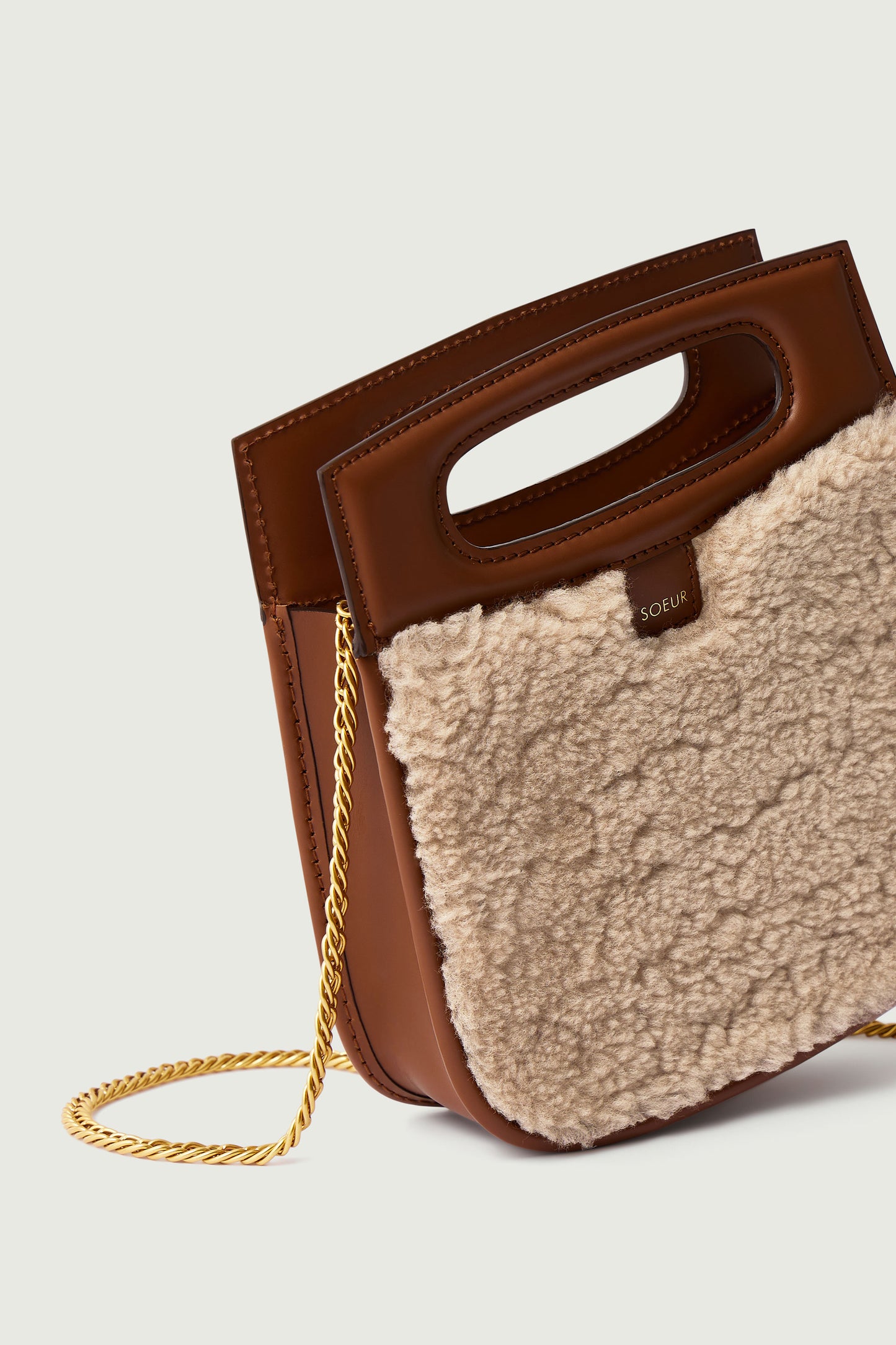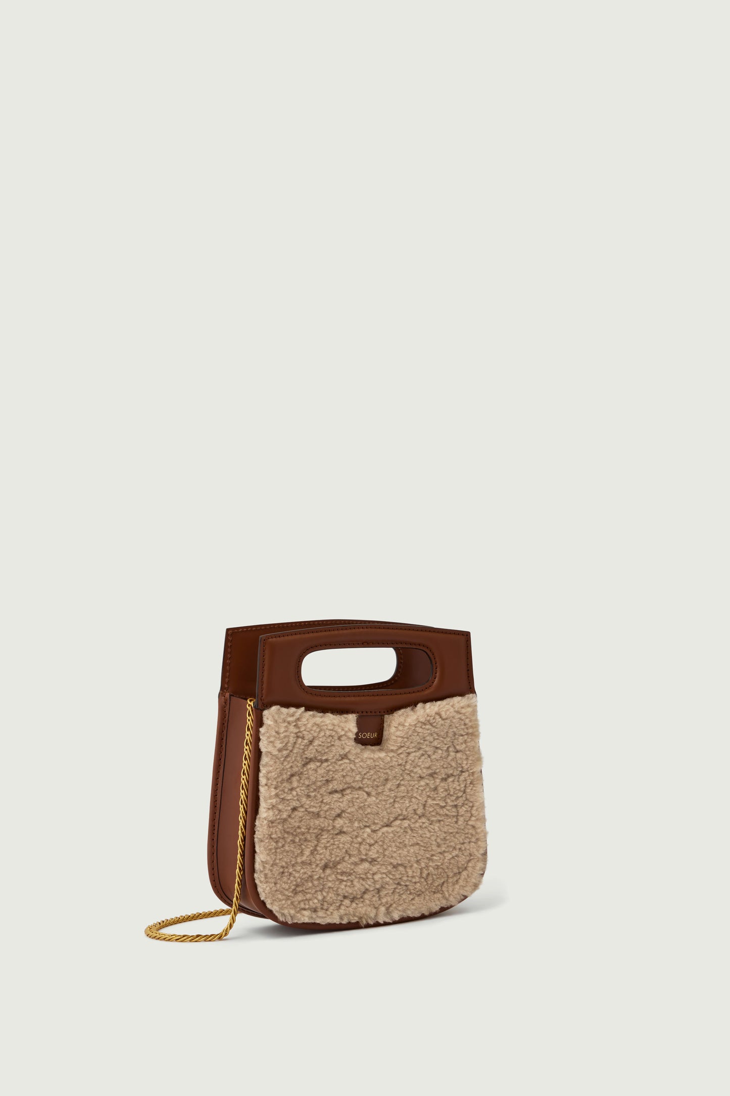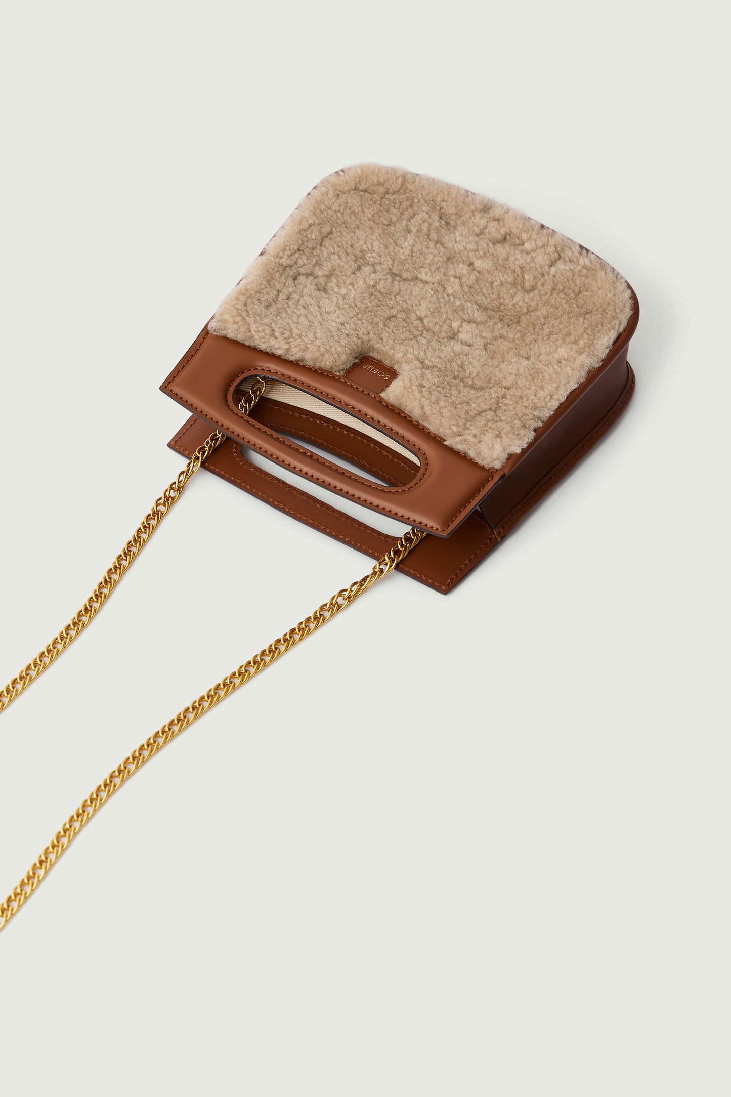 cheri mini bag Small bag in natural smooth leather and sand shearling